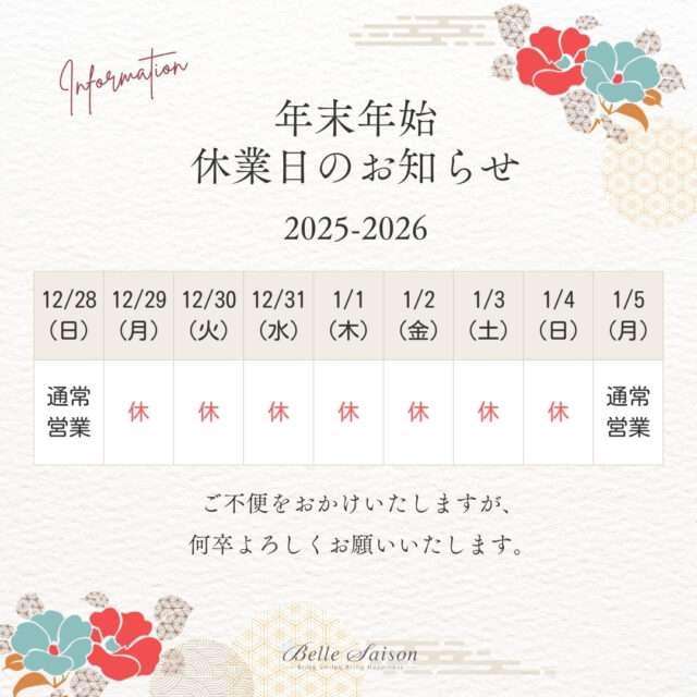 ■年末年始休業日 2025年12月29日(月)~2026年1月4日(日)