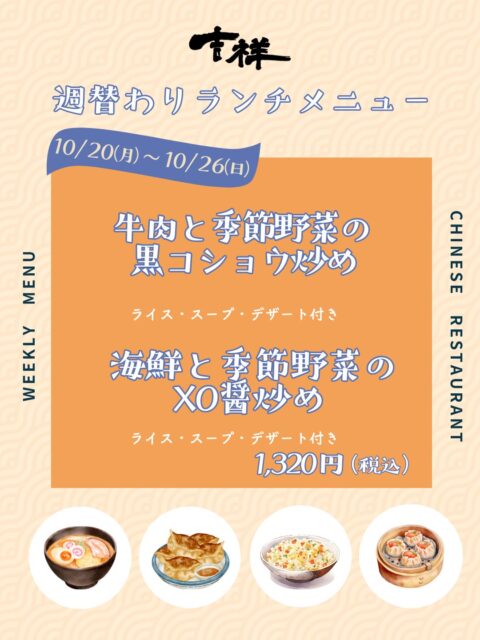 10/20(月)〜10/26(日)の週替わりメニューをご紹介🍴